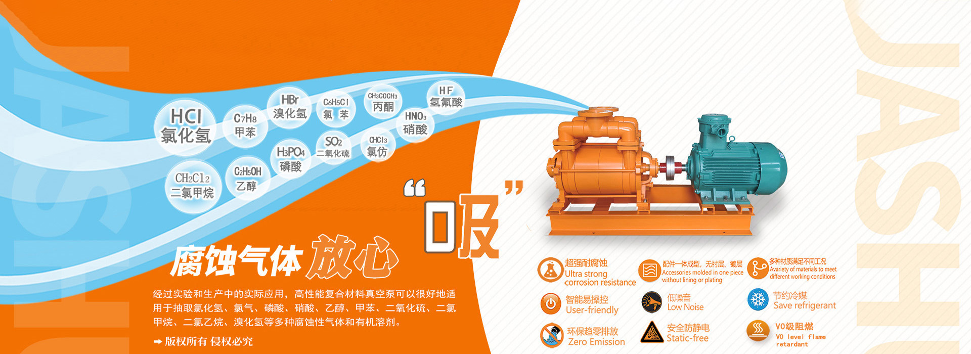 淄博華舜耐腐蝕真空泵有限公司主要生產(chǎn)各種型號和規(guī)格的水噴射泵、耐酸泵、耐酸真空泵等產(chǎn)品,是一家集科研開發(fā)、設(shè)計咨詢、生產(chǎn)、銷售、服務(wù)于一體,利用新型高性能復合材料,專業(yè)生產(chǎn)耐腐蝕液環(huán)真空泵的國家高新技術(shù)企業(yè), 坐落于“中國泵業(yè)名城”---山東省淄博市博山區(qū),公司通過了ISO9001質(zhì)量體系認證。公司獨立研發(fā)的具有多項自主知識產(chǎn)權(quán)的專利產(chǎn)品-耐腐蝕系列水環(huán)式真空泵,通過了省級科技成果鑒定,處于“國際先進水平”。 產(chǎn)品過流部件采用三大系列高性能復合材料(HS-V130、HS-V110、HS-V80)一體成型,耐腐蝕范圍廣、無襯層不脫落、節(jié)能效率高、運行可靠、環(huán)保節(jié)水、 體積小、重量輕、使用壽命長等特點。